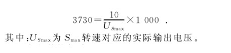 模擬量輸出增益調(diào)整特性曲線如圖4所示,調(diào)整增益參數(shù)可改變較大轉(zhuǎn)速所對(duì)應(yīng)的模擬量電壓輸出值,使特性曲線的斜率發(fā)生變化。本例中增益參數(shù)設(shè)定為0時(shí),實(shí)測(cè)較大轉(zhuǎn)速對(duì)應(yīng)的電壓為9.93V,可見特性曲線為增益過小。經(jīng)計(jì)算、設(shè)定增益參數(shù)后,再次實(shí)測(cè)較大轉(zhuǎn)速對(duì)應(yīng)電壓變?yōu)?0V,增益特性變?yōu)槔硐胩匦郧€。
