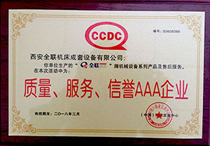 液壓機-西安全聯成套榮獲得質量、服務、信譽AAA企業證書。